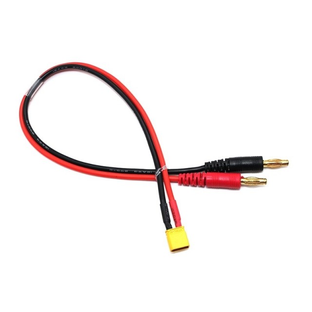 Ladekabel med XT30-plugg til 4mm bananplugger. Benyttes for lading av batterier med XT30-plugg, og kobles rett i ladere med 4mm tilkobling.