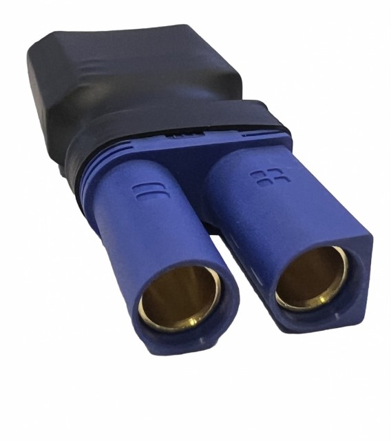 Praktisk og kompakt overgang fra EC5 til XT90. Ypperlig om man har f.eks batterier med XT90 -kontakter, som skal benyttes mot et EC5 oppsett