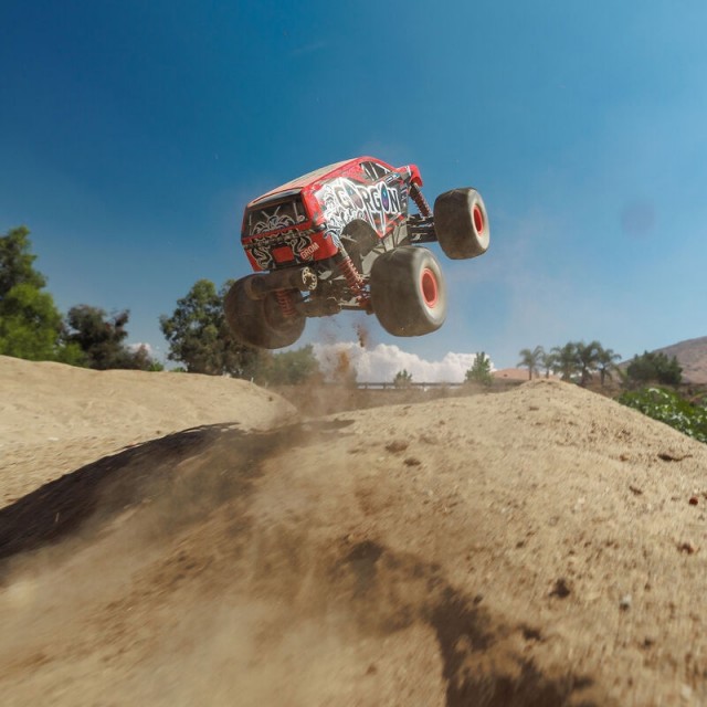 The GORGON 4X4 RTR Monster Truck is built to bounce and blast. The all-terrain, oil-filled coilover shocks soak up landings like a pro wrestler takes chair shots. Got uneven ground? Dial in your ride height and gain the clearance you need to send it clean — no scraping, no slowing down.