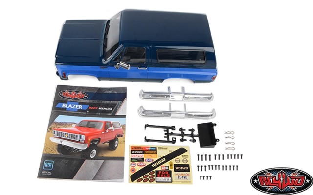 Shown installed on RC4WD Trail Finder 2 RTR Chassis for example (Not Included) Shown installed on RC4WD Trail Finder 2 RTR Chassis for example (Not Included) Shown installed on RC4WD Trail Finder 2 RTR Chassis for example (Not Included) RC4WD Chevrolet Blazer Hard Body Complete Set (Navy/Blue) PrisNOK2 995,00 inkl. mva. På lager: 1 stk. Antall Kjøp Ønskeliste Lagerstatus: På lager: 1 stk. Artikkelnr.: Z-B0272 Produsent: RC4WD Del dette Produktinfo Produktanmeldelser (0) RC4WD Chevrolet Blazer Hard Body Complete Set (Navy/Blue) Specifications: Injection Molded Plastic Navy Blue Painted Main Body Chrome Plated Parts Black Colored Interior Parts Hard Plastic Clear Molded Window Dash with Steering Wheel Metal Blazer and Chevrolet Emblems Opening Hood with Metal Hinges Magnets to Keep Hood Closed Opening Rear Window and Tailgate Full High Detailed Interior Removable Top for Open Air Feel LED Lighting Compatible Wheelbase: 11.3in / 287mm Width of Body: 8.78in / 223mm Width with Mirrors: 11.7in / 299mm Total Length: 19.8in / 502mm Total Weight: 45.86oz / 1300g What's Included: 1x RC4WD Chevrolet Blazer Hard Body Complete Set (Navy/Blue) 1x RC4WD Body Mounting Parts Tree (Blazer/4Runner) (Z-B0112) 1x Front Bumper 1x Rear Bumper 5x Steel Button Head Cap Screws M3 x 10mm (Z-S0653) 3x Steel Button Head Cap Screws M3 x 12mm (Z-S0654) 4x Steel Button Head Cap Screws M3 x 14mm (Z-S0655) 5x Steel Flat Head Cap Screws M3 x 10mm 4x Button Head Self Tapping Screws M3 X 6mm (Black) (Z-S1574) 4x Button Head Self Tapping Screws M3 X 8mm (Black) (Z-S1576) 3x Button Head Self Tapping Screws M3 X 10mm (Black) (Z-S1578) 1x Instruction Manual 1x Decal Sheet Replacement Parts: RC4WD Chevrolet Blazer Main Body (Z-B0116) RC4WD Chevrolet Blazer Topper (Z-B0118) RC4WD Chevrolet Blazer and K10 Chrome Grill and Bumper Parts Tree (Z-B0094) RC4WD Chevrolet Blazer and K10 Clear Lenses Parts Tree (Z-B0096) RC4WD Chevrolet Blazer and K10 Hood and Tailgate Parts Tree (Z-B0098) RC4WD Chevrolet Blazer and K10 Seats, Steering Column Parts Tree (Z-B0100) RC4WD Chevrolet Blazer and K10 Interior Panels Parts Tree (Z-B0102) RC4WD Chevrolet Blazer and K10 Chrome Handles and LED Holder Parts Tree (Z-B0104) RC4WD Chevrolet Blazer and K10 Chrome Mirror and Rear Taillight Parts Assembly (Z-B0106) RC4WD Chevrolet Blazer and K10 Accessory Parts Tree (Z-B0108) RC4WD Chevrolet Blazer Topper Clear Window Parts Tree (Z-B0110) RC4WD Body Mounting Parts Tree (Blazer/4Runner) (Z-B0112) RC4WD Chevrolet Blazer and K10 Main Cab Clear Window Parts Tree (Z-B0114) RC4WD Chevrolet Blazer Metal Emblem Set (Z-S1560) RC4WD Chevrolet Blazer and K10 Functional Hood and Tailgate Hardware (Z-S1564) Silver Steel Body Clips 1.21mm Optional Parts: Tough Armor Front Winch Bumper for Chevy Blazer and K10 (Z-X0032) RC4WD Push Bar for RC4WD Chevy K5 Front Bumper (Z-X0036) RC4WD Chevrolet Blazer and K10 Chrome Front Grill w/Optional Inserts (Z-B0124) Tough Armor Tube Roll Bar w/Rear Tire Mount for Chevrolet Blazer and K10 Body Sets (Z-S1872) RC4WD Small Block V8 Engine Bay for Chevrolet Blazer and K10 (Z-S0192) Trail Finder 2 Plastic Body Posts (Z-B0029) RC4WD Tough Armor Rear Bumper for Chevrolet Blazer and K10 (Z-S1744) RC4WD Chevrolet Blazer Decal Sheet Set for Chevy Blazer Body (Z-B0123) Roll Bar Rack for RC4WD Chevy Blazer Body (Black) (VVV-C0353) Roll Bar Rack w/Spare Mount for RC4WD Chevy Blazer Body (Black) (VVV-C0355) Roof Rack, Rollbar, Light Bar Combo for RC4WD Chevy Blazer Body (Black) (VVV-C0357) Roll Bar Rack w/Spare Mount for RC4WD Chevy Blazer Body (Red) (VVV-C0356) Fender Flares for RC4WD Chevy Blazer and K10 Body Sets (Z-S2017) Replacements Hardware: Steel Button Head Cap Screws M3 x 16mm (10) (Z-S0656) Steel Button Head Cap Screws M3 x 14mm (10) (Z-S0655) Steel Button Head Cap Screws M3 x 12mm (10) (Z-S0654) Steel Button Head Cap Screws M3 x 10mm (10) (Z-S0653) Steel Button Head Cap Screws M2 x 6mm (10) (Z-S0933) Socket Head Cap Screws M1.6 x 6mm (10) Steel Socket Head Cap Screw M1.6 X 6mm (10) (Z-S1236) RC4WD Magnet and Metal Mounts (Z-S1562) Button Head Self Tapping Screws M2 X 8mm (Silver) (Z-S1580) Socket Head Self Tapping Screws M2 X 6mm (Black) (Z-S1584) Socket Head Self Tapping Screws M2 X 5mm (Black) (Z-S1582) Flat Head Tapping Screw 1.6 X 6mm (Silver) (Z-S1586) Button Head Self Tapping Screws M2.5 X 6mm (Black) (Z-S1570) Button Head Self Tapping Screws M2.5 X 8mm (Black) (Z-S1572) Button Head Self Tapping Screws M3 X 6mm (Black) (Z-S1574) Button Head Self Tapping Screws M3 X 8mm (Black) (Z-S1576) Button Head Self Tapping Screws M3 X 10mm (Black) (Z-S1578) Flat Head Self Tapping Screws M3 X 10mm (Black) (Z-S1568) Flat Head Self Tapping Screws M1.4 X 8mm (Silver) (Z-S1566) Optional Colors: RC4WD Chevrolet Blazer Hard Body Complete Set (Z-B0092) RC4WD Chevrolet Blazer Hard Body Complete Set (Orange) (Z-B0146) RC4WD Chevrolet Blazer Hard Body Complete Set (Light Blue) (Z-B0148) RC4WD Chevrolet Blazer Hard Body Complete Set (Yellow) (Z-B0152) RC4WD Chevrolet Blazer Hard Body Complete Set (Silver/Black) (Z-B0273) Instruction Manual: Click here to download. Notes: Please note that these truck bodies are hand-painted, so minor blemishes, differences, or imperfections may occur. Fits RC4WD Trail Finder 2 Truck 1/10 Scale Builders Kit (Z-K0069) Fits RC4WD Trail Finder 2 Truck Kit w/1982 Toyota Pickup Hard Body Complete Set (Z-K0070) Body comes pre assembled. Installation only needed for front and rear bumpers. Color Disclaimer: Lighting conditions during photography can affect color representation. Stripe brightness may appear different in person. Skriv en produktanmeldelse og del dine erfaringer med dette produktet med andre kunder. Email Navn Din vurdering? 1 star 2 star 3 star 4 star 5 star 6 star Oppgi en tittel for anmeldelsen din Skriv inn produktanmeldelsen i feltet under