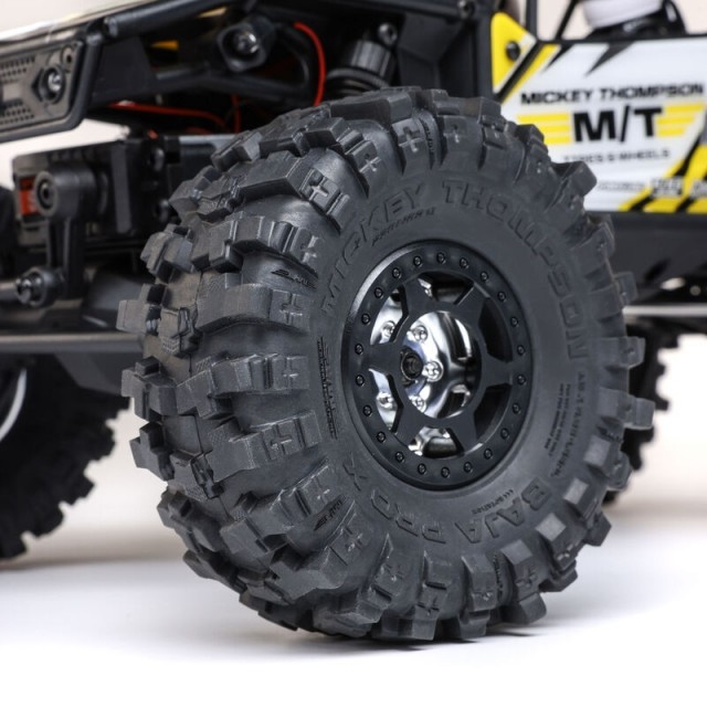 No previous 1/18 scale RTR mini crawler has offered this level of performance and value. Four-wheel steering gives the UTB18 Capra 4WS impressive maneuverability, whether you're climbing rock ledges, flexing over obstacles, or squeezing through tight notches. Portal axles with Currie F9 housings provide the high clearance to navigate those rougher, tougher trails. Officially licensed Mickey Thompson Baja Pro X tires mounted to Pro-Line Holcomb Crawler Bead-Loc wheels supply the grip to get through extreme terrain.
