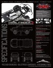 The Trail Finder 2 Chassis is a machined billet aluminum ladder frame design with leaf springs, scale shock hoops, chassis servo mounts and hard body mounts.