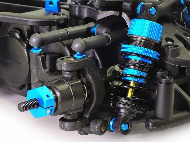 • Highly agile suspension utilizes TRF Special Dampers, rear stabilizer and titanium coated suspension shafts.