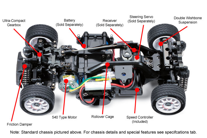 Kommer på M-05 chassiset med forhjulsdrift som er lett å bygge og har en meget god vektbalanse med servo, mottaker og ESC montert bak på rammen, og med et lavt tyngdepunkt for optimalisert kjøring. Modellen leveres med en 540 børstemotor, uavhengig hjuloppheng med coil over dempere og 3-delt tie-rod styrestag som gir gode kjøreegenstaker og svingradius. M-05 blir brukt mye i konkurranser mellom RC-kjørere og gir mange muligheter for oppgraderingsdeler, etter hvert som du vil øke kjøreegenskapene ytterligere.
