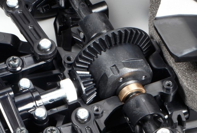 • 4-bevel differential gears and 4-wheel double wishbone suspension.