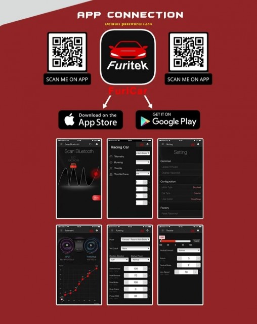 - Work with Brushed/Brushless motors (config via app, default is brushless)