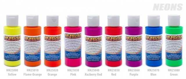 Hobbynox Airbrush Colors include Opaque (solids), Transparent, Neon, Pearl and Iridescents.