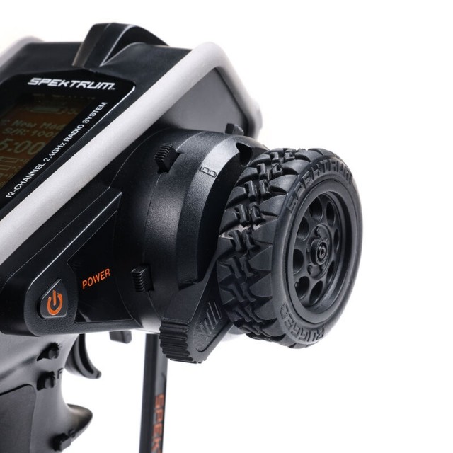 The aggressive off-road steering wheel tread helps the precision of Spektrum technology to deliver a tactile feel, even if you're crawling, bashing, or boating in harsh conditions. The integrated thumb-lever makes it possible to steer one-handed safely and with a higher level of precision.