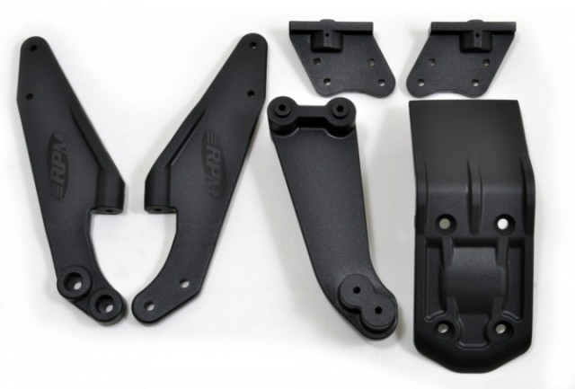 - Included Rear Skid Plate: In order to make the toughest wing mounts, we had to devise a new structure to create a triangulated base of support. Our new rear skid plate incorporates mounting points for a vertical brace. The brace spans the distance between the wing mounts and the skid plate, creating an incredibly tough system. As an added bonus, the skid plate helps protect the rear end of that expensive aluminum chassis.