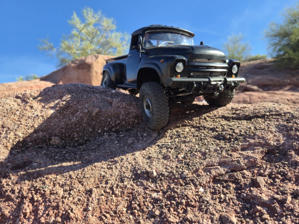 The ZIL Pickup is a fully molded hard body with a 267mm wheelbase. Inspired by classic 1950s–60s pickups, it features a detailed interior, functional doors, hood and tailgate, radiator, scale engine space, and a separate full drop bed with a built-in storage compartment for your RC battery. It has 10 LED light buckets and lenses for the optional KUDU light kit (future release). Side steps are integrated with the chassis.