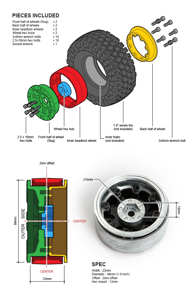 Boom Racing ProBuild™ 1.9in Narrow RTS Adjustable Offset Beadlock Wheels (2) Chrome /Matte Black PrisNOK799,00 inkl. mva. Kjøp
