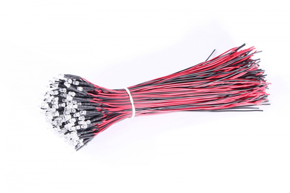 LEDs 3mm White Flat Top DC 9-12V with Pre-Soldered 20cm Wire (10)