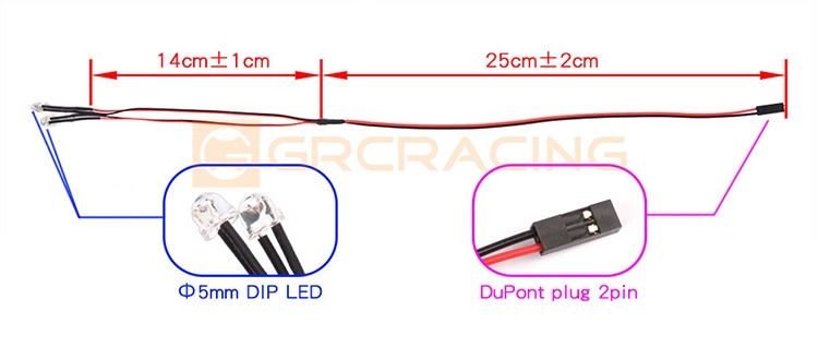 GRC 3~7.4V Two Short Head LED Lights for Square Spotlight (2) Red