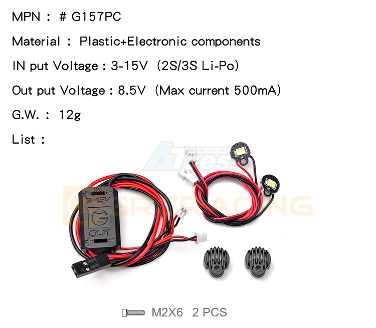GRC 3~7.4V Two Short Head LED Lights for Square Spotlight (2) White
