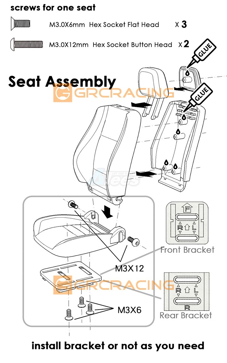 GRC Simulation Cab Multi-directional Adjustable Seat for 1/10 RC Crawler Black (2)