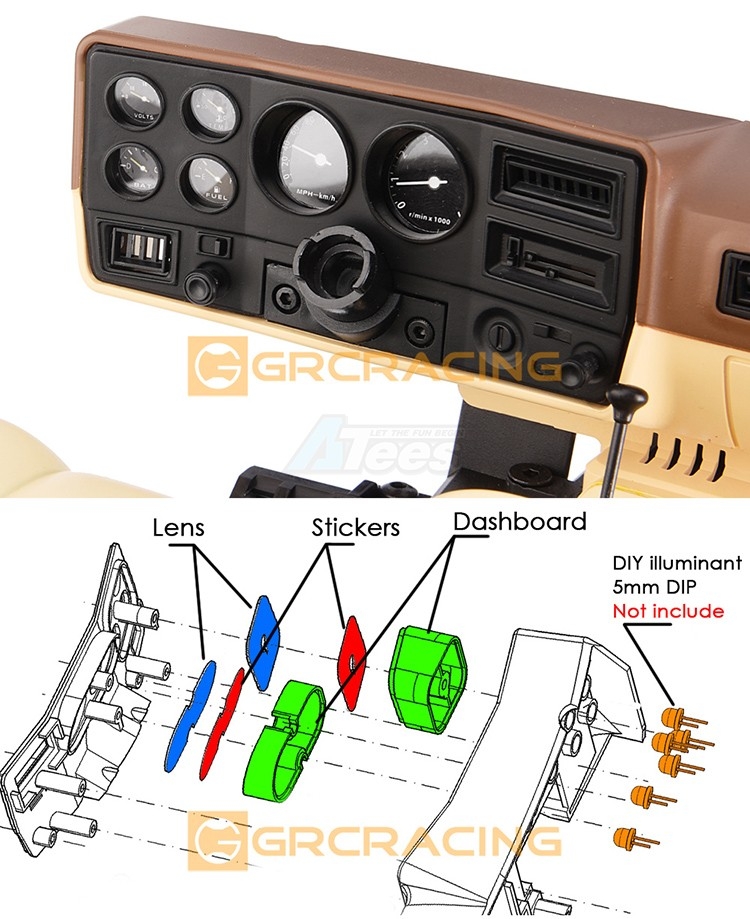 GRC Chevrolet Blazer 1979 Interior Full Set w/Dashboard /Seats For TRX-4 Black for Traxxas TRX-4