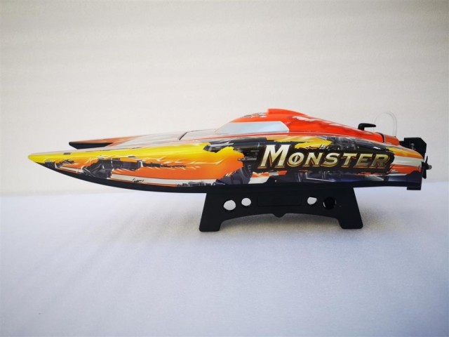 Joysway Monster er en råtøff katamaran med en toppfart på mer enn 55km/t. Monster Cat har kraftig vannkjølt børsteløs motor og fartsregulator. Båten har holdbart ABS-plastskrog og servostyrt ror. Båten er ferdig montert og leveres med 2.4Ghz radiosender. Det følger med ett 3s drivbatteri på 2200mAh og lader.