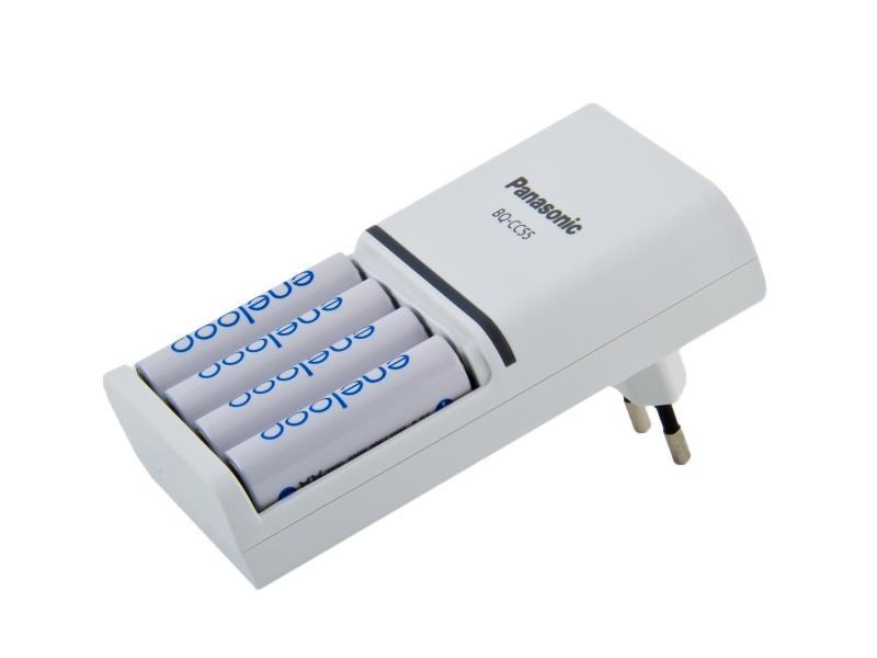 Fin pakke med 4 oppladbare AA batterier sammen med lader som kan lade både AA og AAA batterier. Dette er Smart and Quick-laderen som kan lade AA-batterier på ca 1,5 time. Laderen har ladeindikator som viser hvor langt ladeprosessen har gått.