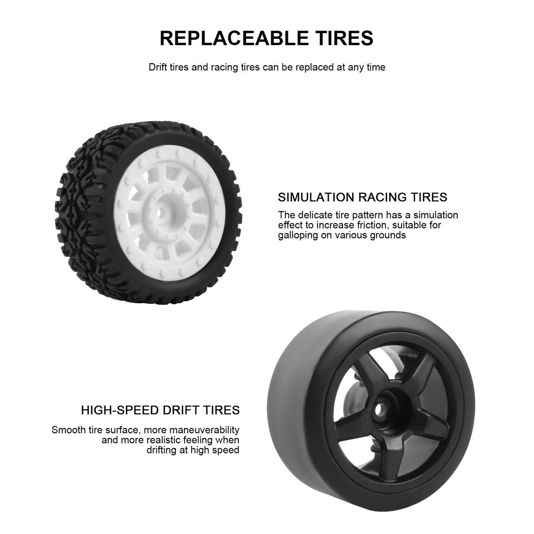 Med i esken har du alt du behøver for å kjøre. Bilen, 2.4G radiosender, komplett sett driftedekk(i tillegg til standard dekk), brukerhåndbok, lader, Li-Ion batteri og basisverktøy. Det eneste du behøver i tillegg for å kjøre er 4x AA batterier til senderen.