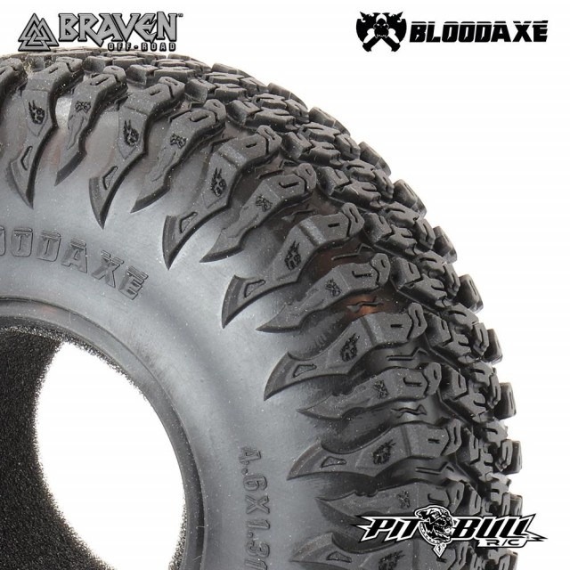 NEW!!! Pit Bull RC proudly introduces our New SCALE 4.6x1.31-1.9 Braven BloodAxe...designed to conquer any trail! The 1.9 BloodAxe tire! Based on the 1:1 Braven BloodAxe tires with intricate details to match its big brother in looks, as well as performance!