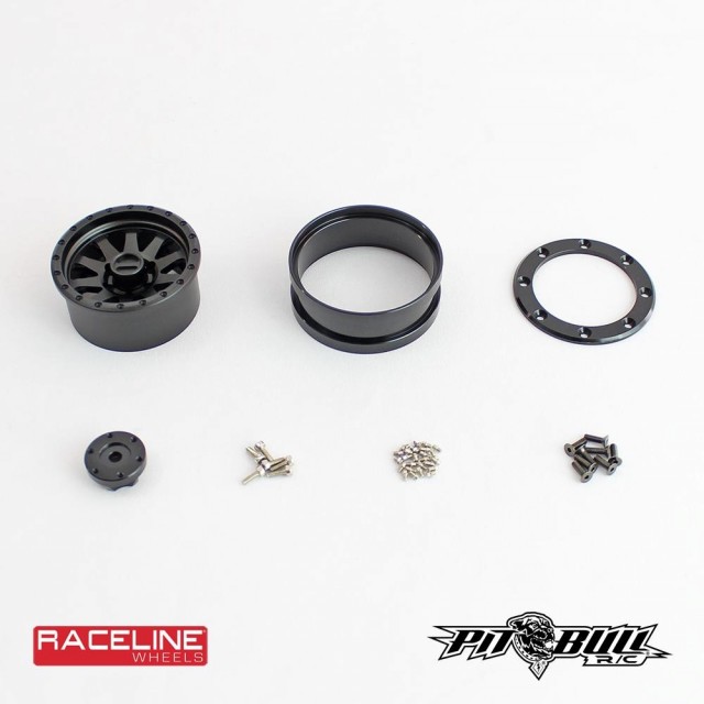 Pit Bull RC has officially jumped feet first into the scale aluminum beadlock wheel world with our latest release! Pit Bull RC is proud to partner up with Raceline Wheels to bring you not one, but three, new licensed scale aluminum 1.55 & 1.9 beadlock wheels! Introducing the Clutch, Combat, and Ryno beadlock wheels! These are true scale replicas of Raceline’s awesome 1:1 wheels! Available in all black, with scale beadlock bolts, integrated faux machined locking hubs, and unbeatable scale looks! Includes everything required to build four complete wheels! Are you ready to take your scale R/C game to the next level?