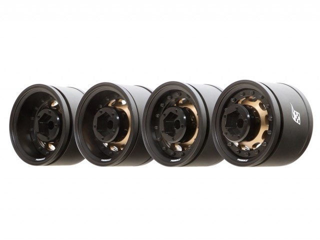 Boom Racing ProBuild™ 1.55in R12 Adjustable Offset Aluminum Beadlock Wheels (2) Black/Black