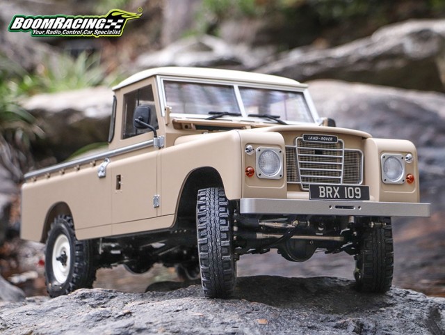 Regress to a simpler, classier time, and experience the ageless charm of this iconic vehicle. We’ve carefully studied the vehicle extensively and spent over a year designing and producing this scaled-down model kit. After years of waiting for such a model, the Boom Racing Land Rover Series III 109 radio control car kit has finally arrived.