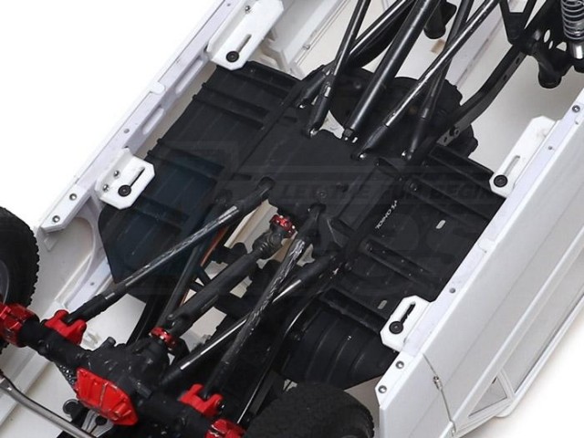We´ve mounted the body on an Axial SCX10 II for your reference. Four bolts will lock the body securely in place.