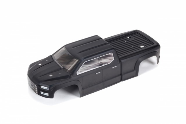 Matte black ARRMA trim scheme for realistic stealthy looks - Strong and durable polycarbonate for long-lasting performance during extreme bashing action - Pre-trimmed for fast and hassle-free fit - Pre-painted and decaled for ARRMA bashing looks and fast replacement of your kit bodyshell - Pre-drilled body mounting holes for easy fit - Aggressive looks and realistic detailing for awesome monster truck styling