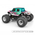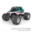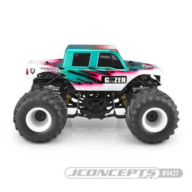 When it comes to monster truck nastiness, look no further than the Gozer body for 12 to 13” wheelbase monster trucks. The angular front and rear sections provide major clearance for big racing tires such as the JConcepts #3168 Renegades. The nature of the 4-door body has a lot of purpose in mind and with a little nip here and a tuck there, the Gozer sits down on platforms such as the Axial SMT10 and similar sized and wheelbase trucks. A large arched front wheel-well dead-ends at the grille section and once covered with included decal, looks quite bossy and stares you down like a piece of heavy-equipment.