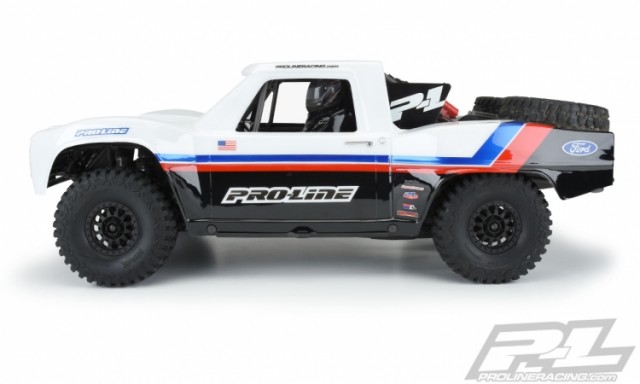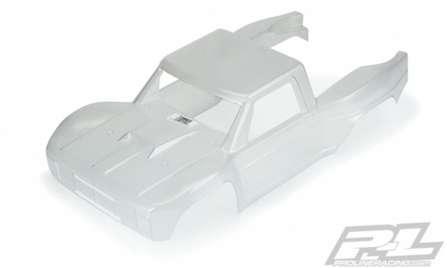 This is the 1967 Ford® F-100 Race Truck Clear Body for the Unlimited Desert Racer®. The 1967 Ford® F-100 is a classic vintage truck that has recently become a popular platform for building full-size pre-runners. Pro-Line is proud to bring the nostalgic and majestic body lines of the 1967 Ford® F-100 to your Traxxas® UDR® for the ultimate in scale realism! This body features the iconic flat front grill and wide fender flares to represent the aggressive fiberglass bulges found on custom race trucks. The F-100 body comes clear so you can custom paint your truck to match anything your heart desires and is made from high quality, crystal clear polycarbonate material. Pro-Line´s 1967 F-100 body mounts directly to the cage on the UDR® in the same locations as the stock body and is fully pre-cut for an easy direct fit. Transform the look of your Unlimited Desert Racer® and even more scale realism with the fully licensed 1967 Ford® F-100 Race Truck Body from Pro-Line!