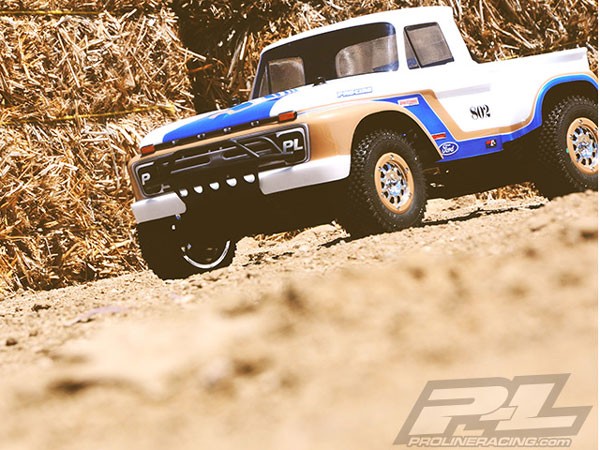 This is a 1966 Ford® F-100 Clear Body for SC trucks with extended body mounts. Now you can have your very own custom “Hay Hauler” with Pro-Line’s licensed 1966 Ford® F-100 body! The ’66 F-100 body comes with perfectly scaled details like the step-sides and huge fender flares that will bring you back to the good old days. You can even create your own version of the Class 8 Desert Truck that dominated the desert in the 1980’s!