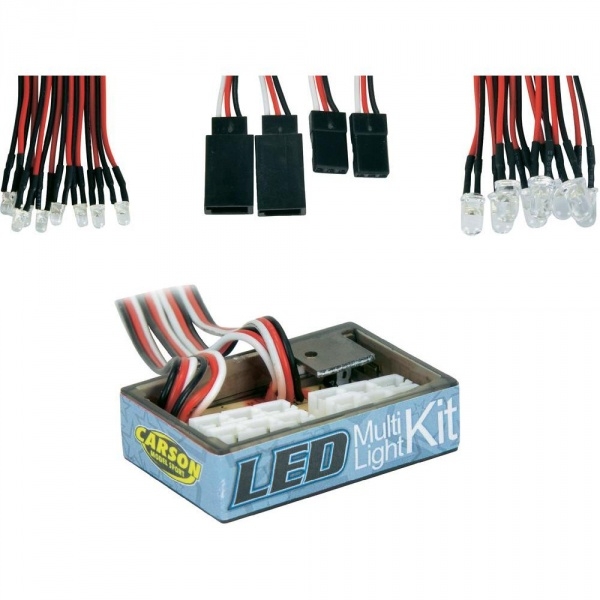 4 x led blinklys 3/5mm, 4 x led Hvit/hovedlys 5mm, 5 x posisjonslys 3mm, 4 x led Rød/baklys/bremselys 5mm