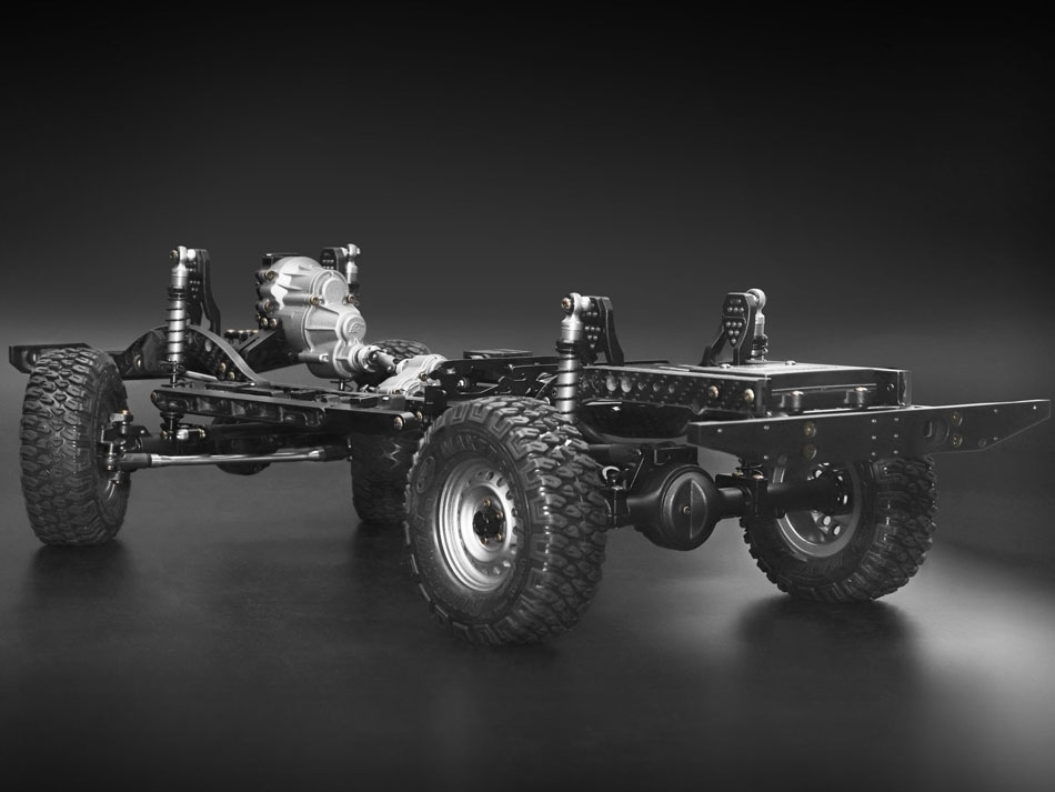 This chassis fits the Team Raffee Co. D110 Station Wagon and Pick-Up hard bodies.