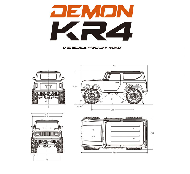 Cross-RC KR-4 Demon er en skikkelig detaljert skala crawler, designet for entusiastene som setter kvalitet og utseende på alle deler i høysetet. Om du er ute etter en råtøff skala crawler, med detaljer som tar deg så nærme en ekte bil som mulig, og skikkelig fremkommelighet så er KR-4 en bil for deg!