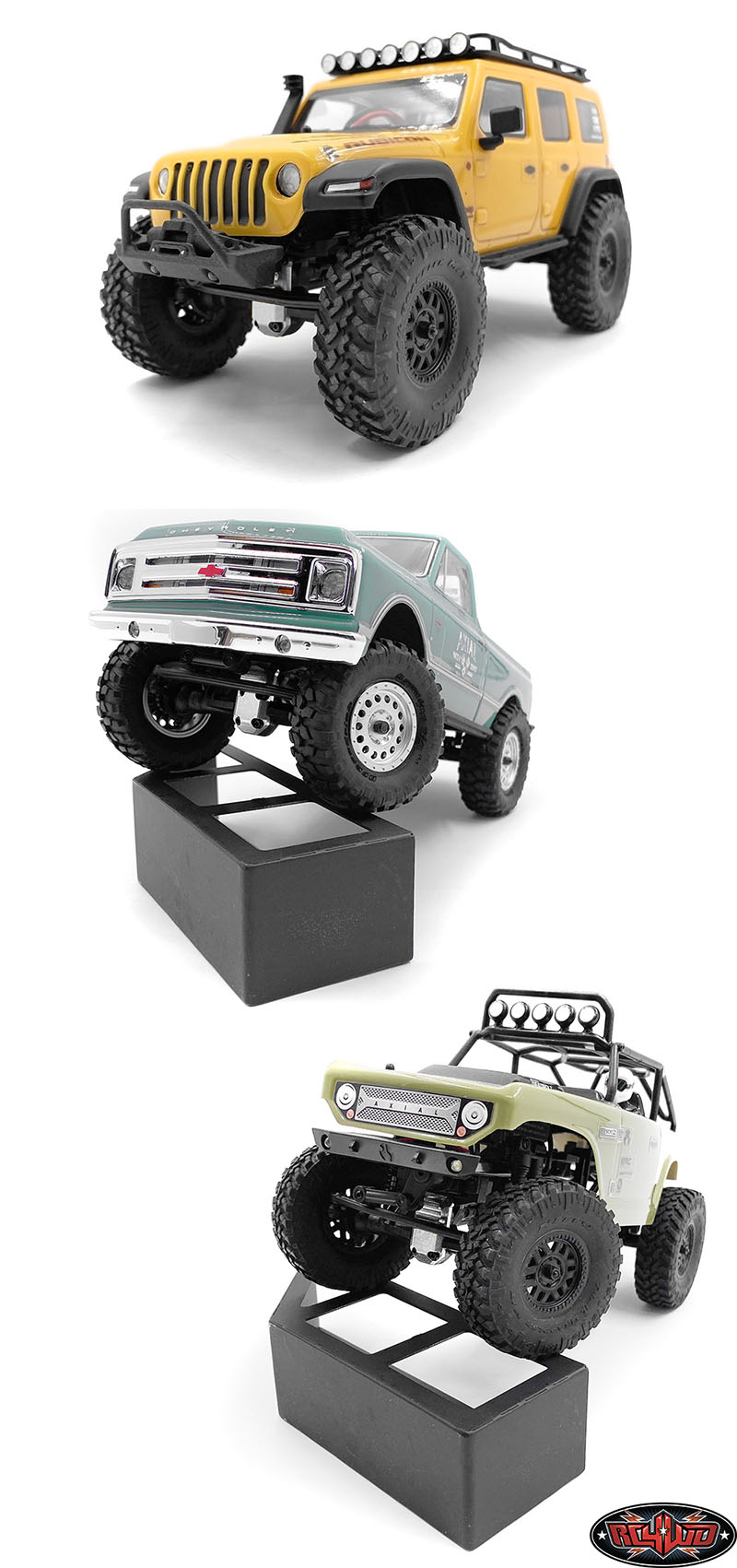 Shown installed on Axial SCX24 1/24 Jeep Wrangler RTR, Axial SCX24 1/24 Chevrolet C10 RTR and Axial 1/24 SCX24 Deadbolt 4WD RTR respectively for example (Not Included)