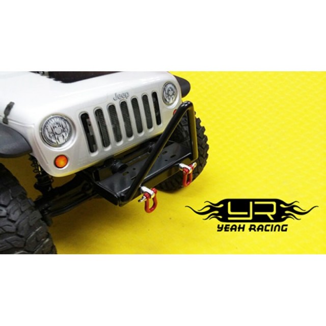 This is Yeah Racing Stinger Steel Bumper w/ Winch Mount and Shackles For Axial SCX10. This product will fulfill your need for ever more realistic accessories with more scaled accessories. The Bumper features mounting points for winches and dual tow points with shackles included. This bumper mounts onto the frame, so it will for sure fit all SCX10 / SCX10 II chassis´s.