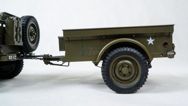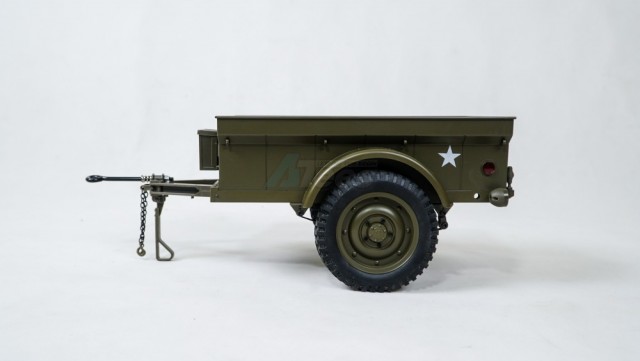 This is a Roc Hobby 1/6 M100 Trailer. Military green color and comes assembled and ready to run.