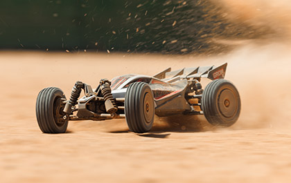 One of those features is the Dynamic Stability Control (DSC) built into the buggy's Spektrum electronics. With four selectable modes, DSC will automatically correct steering input as needed to improve your control, confidence, and safety, whether you're bashing on high-grip or low-grip surfaces. As you gain experience, just turn off the DSC and succeed with the skills you've learned.