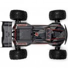 From the 7075 T6 aluminum laser-etched chassis plate to the red-anodized aluminum front and rear bulkheads, EXB-hardened parts provide exceptional toughness and intimidating style. All-metal diff outdrives and gearbox internals, plus durable steel driveshafts, combine for a reliable, heavy-duty drivetrain that holds up to high-speed bashing. Plush oil-filled shocks on EXB 7075 T6 anodized aluminum front and rear towers soak up the bumps.