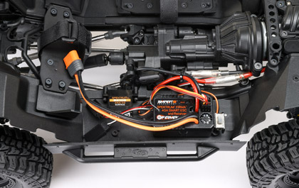 Factory-installed, the brushed power system features a Dynamite 35T 540-size motor and Spektrum Firma 40A Smart 2-in-1 ESC and Receiver unit.