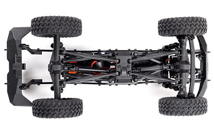 Full-time 4WD and a 3-link front/4-link rear suspension let you confidently muscle this micro crawler over rough, risk-filled trails. Worm gears on the axles increase the ground clearance. Realistic steel frame rails on the C-channel chassis stand up to hard knocks. The proven SCX24 suspension tackles bumps, rocks, and stays stable over tough terrain. Topping it all off is a durable, factory-finished body with contemporary truck styling.