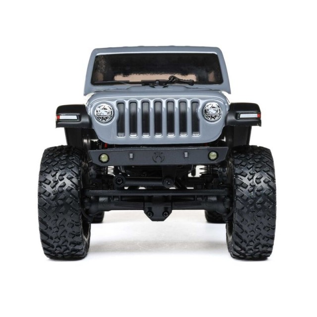 Inside the box, in addition to the assembled and finished rig, you’ll find a Spektrum 2.4GHz transmitter, 350mAh LiPo battery, and handy USB charger. Four AA batteries are even included for the transmitter. The SCX24 Jeep Wrangler JLU is the complete micro rock crawling package. Think small, and get ready for big Axial adventures!