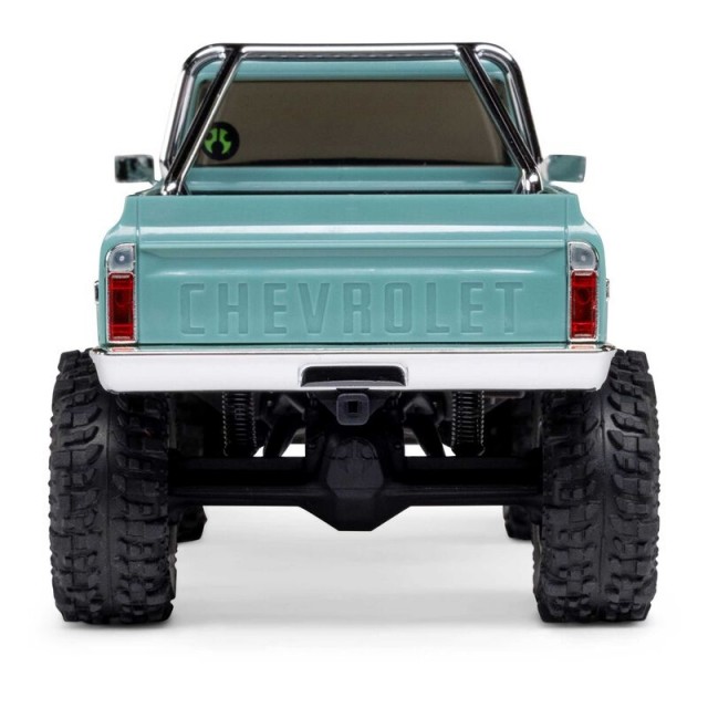 The Chevy K10 includes an angled skid plate to let you easily slide over challenging obstacles - a feature usually found only in competition crawlers. Ramped axle housings and high clearance links also help to avoid dragging and hangups. Climbing stability on the rocks gets a boost from the chassis’ forward weight bias. Other performance features include damped 25mm shocks, full ball bearings, a powerful Axial 65T motor, and dependable Spektrum electronics that are mounted low in the chassis for the optimal center of gravity.