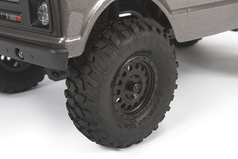 BFGoodrich Krawler™ T/A® KX tires are the winner of more rock-crawling championships than all other tires combined (Race spec tire, Years 2004 through 2008). The Axial version captures the same aggressive look you’ve been waiting for in a smaller 1/24 scale version.