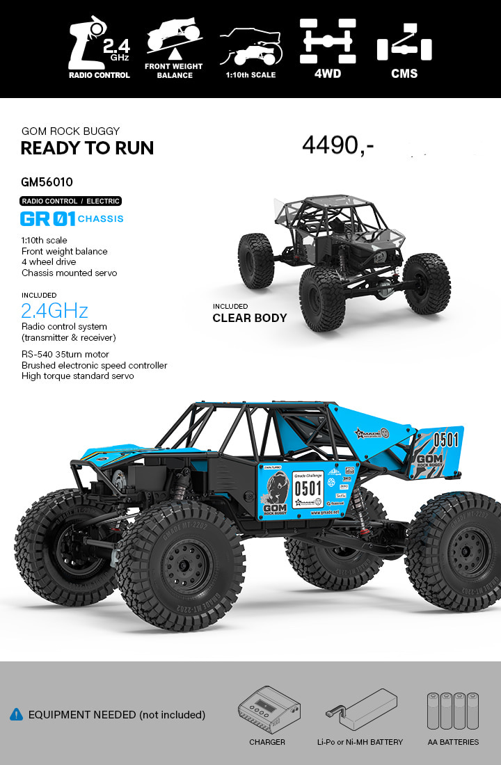 Gmade 1/10 GR01 GOM Rockbuggy RTR Rå Rockbuggy ifra GMade! PrisNOK4 490,00 inkl. mva. Utsolgt, ta kontakt for leveringstid Utsolgt Ønskeliste Lagerstatus: Utsolgt Artikkelnr.: GM56010 Produsent: GMade E-postvarsling Vi beklager, men produktet er midlertidig utsolgt. Legg igjen din e-postadresse og vi vil sende deg en melding så snart varen kommer tilbake på lager igjen. Jeg godtar vilkårene Registrer Del dette Produktinfo Produktanmeldelser (0) Gmade GOM i RTR (Ready To Run) versjon. Kommer komplett med motor, regulator, servo og sender/mottaker.Behøver i tillegg batteri, lader og lakk til karosseriet. Skriv en produktanmeldelse og del dine erfaringer med dette produktet med andre kunder. Email Navn Din vurdering? 1 star 2 star 3 star 4 star 5 star 6 star Oppgi en tittel for anmeldelsen din Skriv inn produktanmeldelsen i feltet under