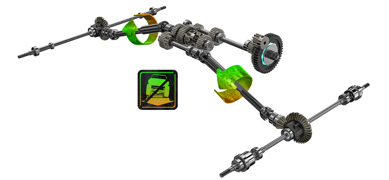 • Vehicles with overdrive on the front axle has an improved steering radius compared to non-overdrive vehicles, making it easier to control when driving on the rough surfaces.