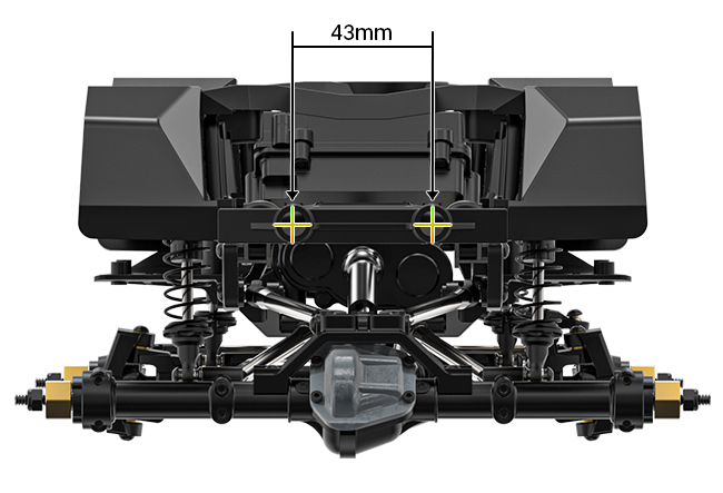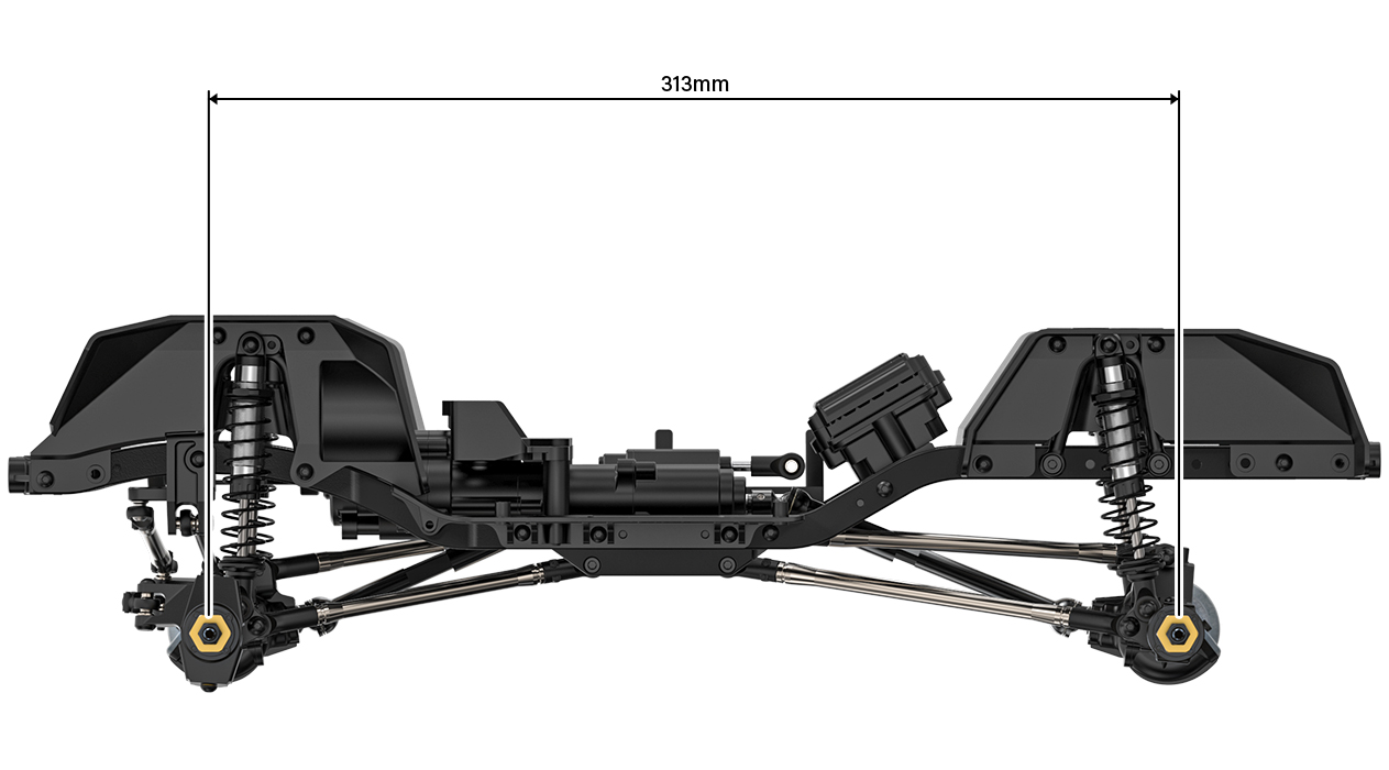 • The GS02F chassis allows 2 types of wheel bases. Basically set for 313mm and can be adjusted to 324mm for custom bodies. (Optional link kits are sold separately)