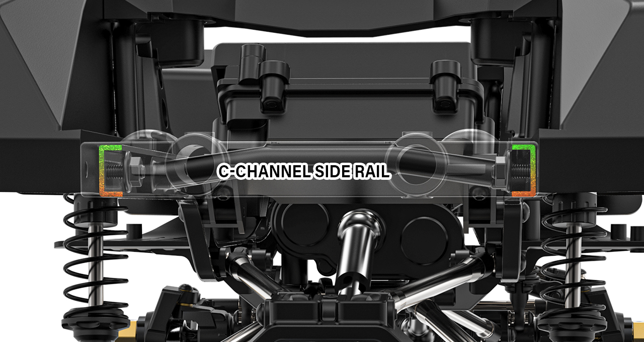 • GS02F frame is designed to look as a chassis of a real car frame and the material of the frame is made of high strength steel, C-channel side rail and is with hex wrench bolted with cross members, which make it resistant to twisting or warping.