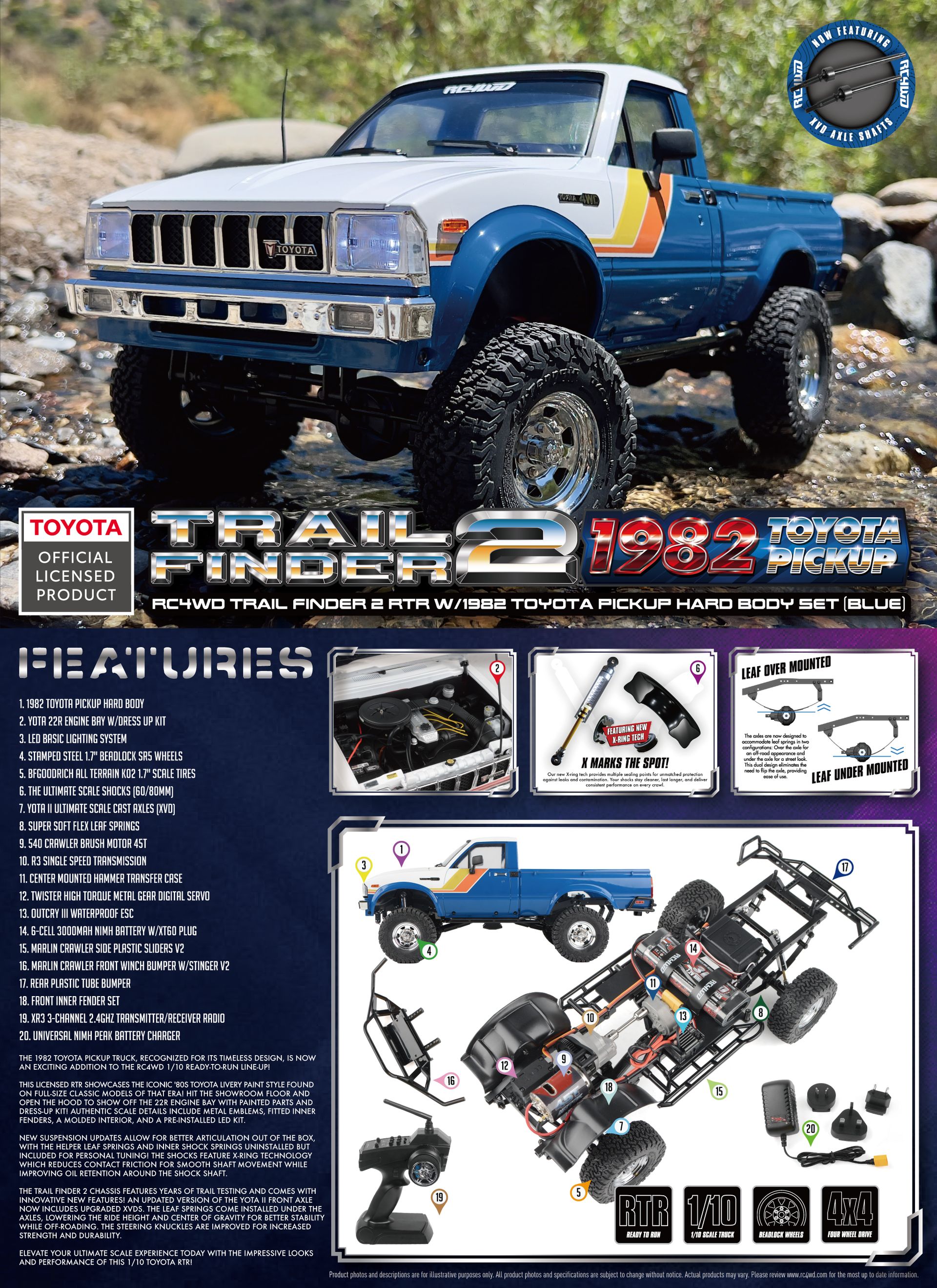 This is the all new Licensed RC4WD Trail Finder 2 RTR w/1982 Toyota Pickup Hard Body Set (Blue) . This has been Officially Licensed by Toyota and is only available from RC4WD and our Dealers